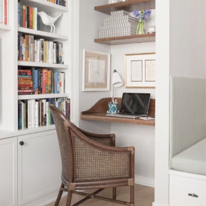 Or get creative will a bookshelf or wall unit for a built-in work area.